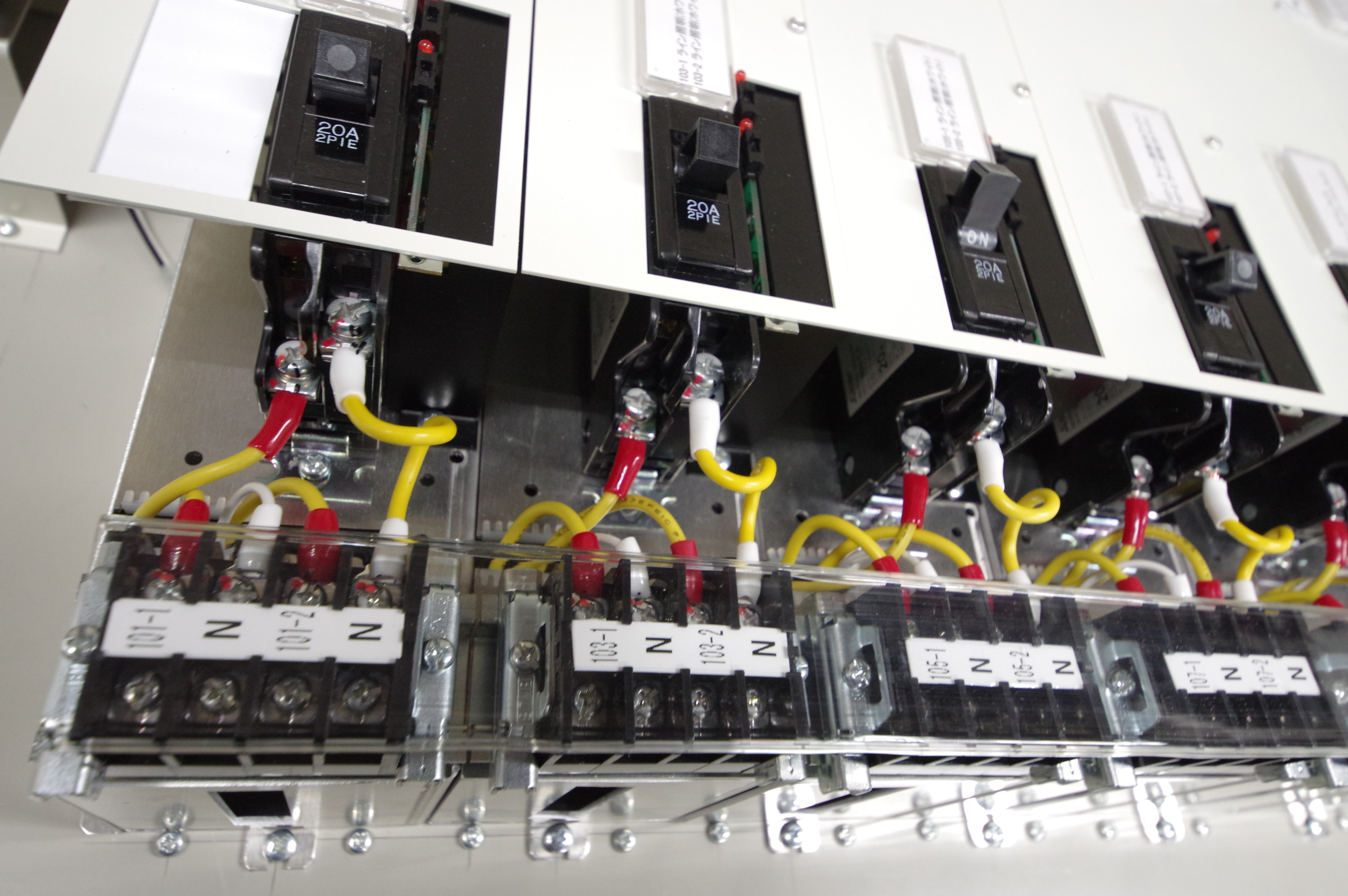 調光器を設置する分電盤です。調光器に加えタイマーなどを合わせて内蔵することで、システム展開が可能になります。盤内に設備が集中するので、設備の管理がし易くなります。